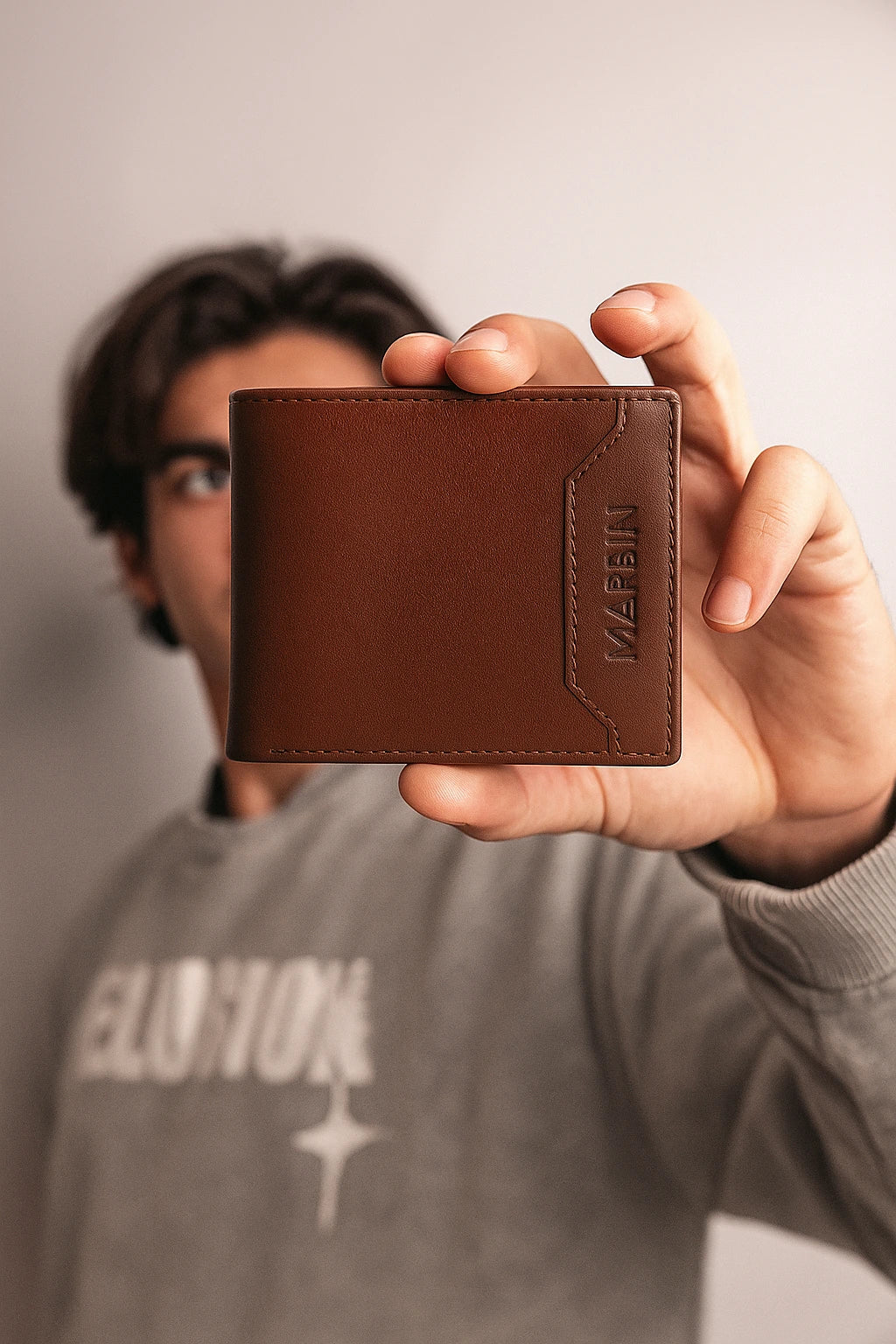 Marbin Men's Leather Wallet – 8 Card Slots (Brown)